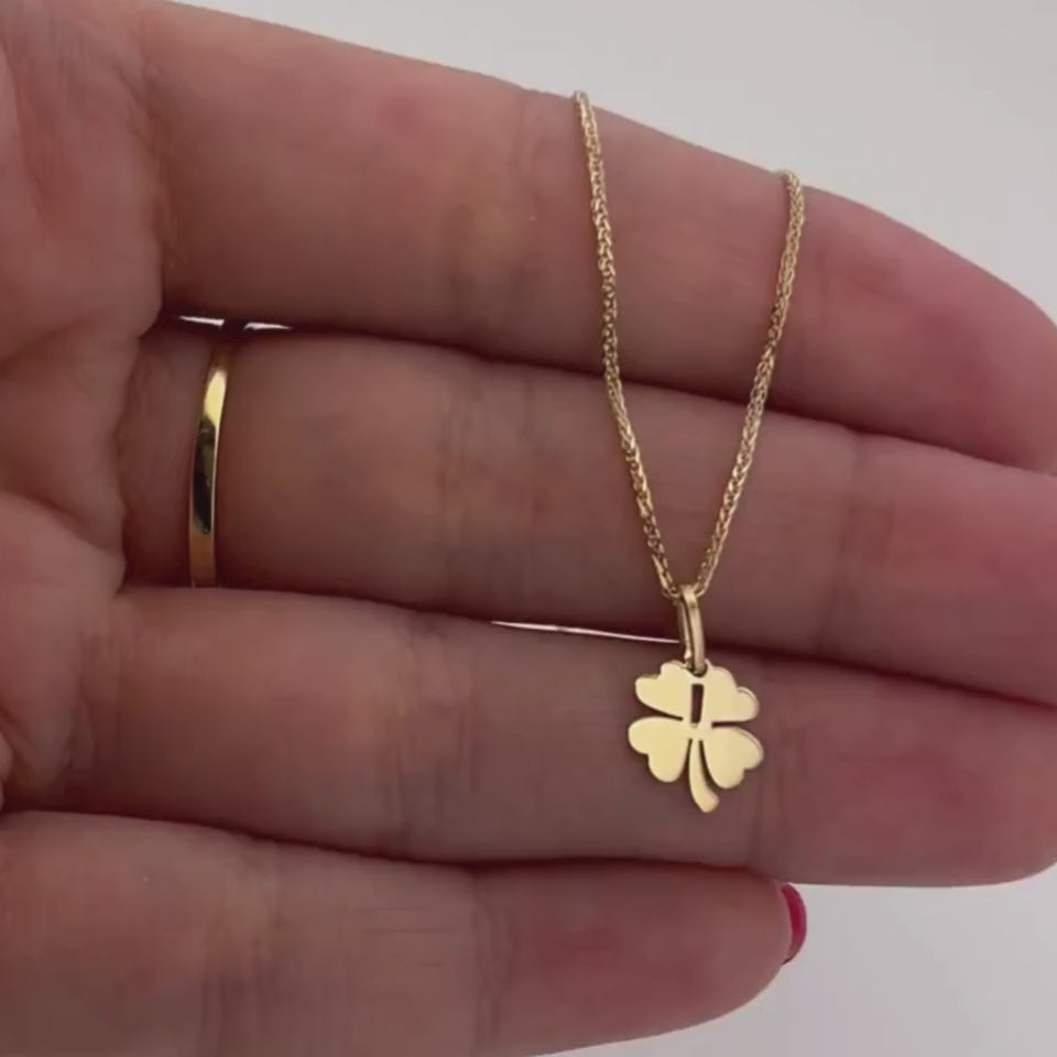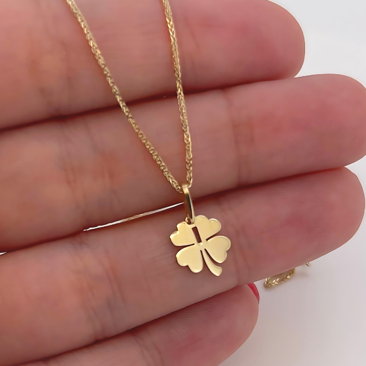 שרשרת "תלתן צ'ארם" המקסימה בזהב לבן/צהוב 14 קראט מוסיפה נופך של אלגנטיות ומזל טוב למראה שלך. אביזר מסוגנן זה מושלם לכל אירוע, ומשפר את הסגנון שלך בחן.