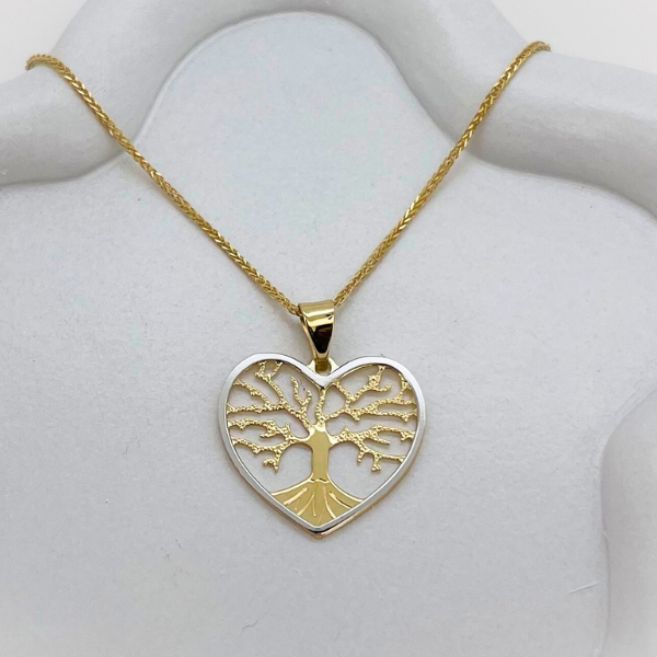Элегантное ожерелье с подвеской в форме сердца "Дерево жизни" из 14-каратного золота украшено изысканными деталями, символизирующими гармонию и внутренний покой. Его легкий и воздушный дизайн добавит элегантности вашему образу, что делает его идеальным аксессуаром для любого случая.