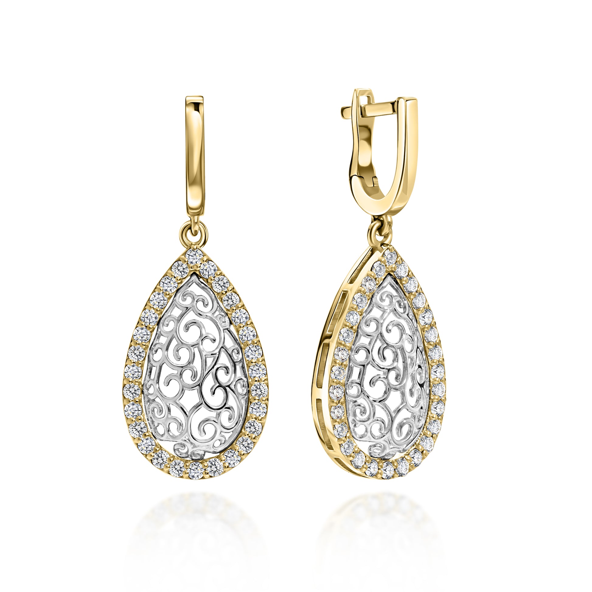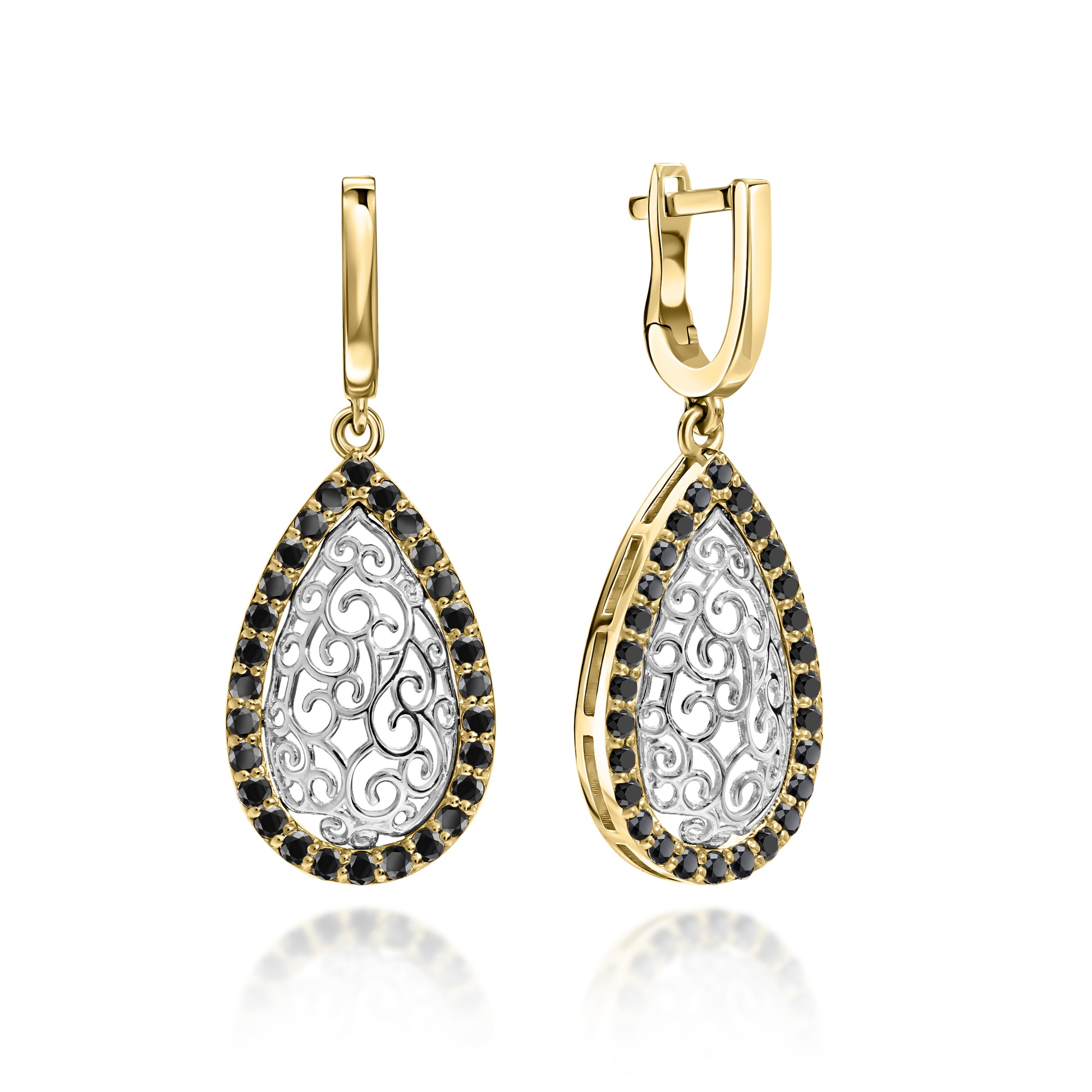 Эти серьги очаровывают своей элегантностью и изысканным дизайном. Изготовленные из натурального золота 14 карат, они имеют замысловатые ажурные узоры и окружены бриллиантами, добавляющими блеск и неповторимый блеск.
